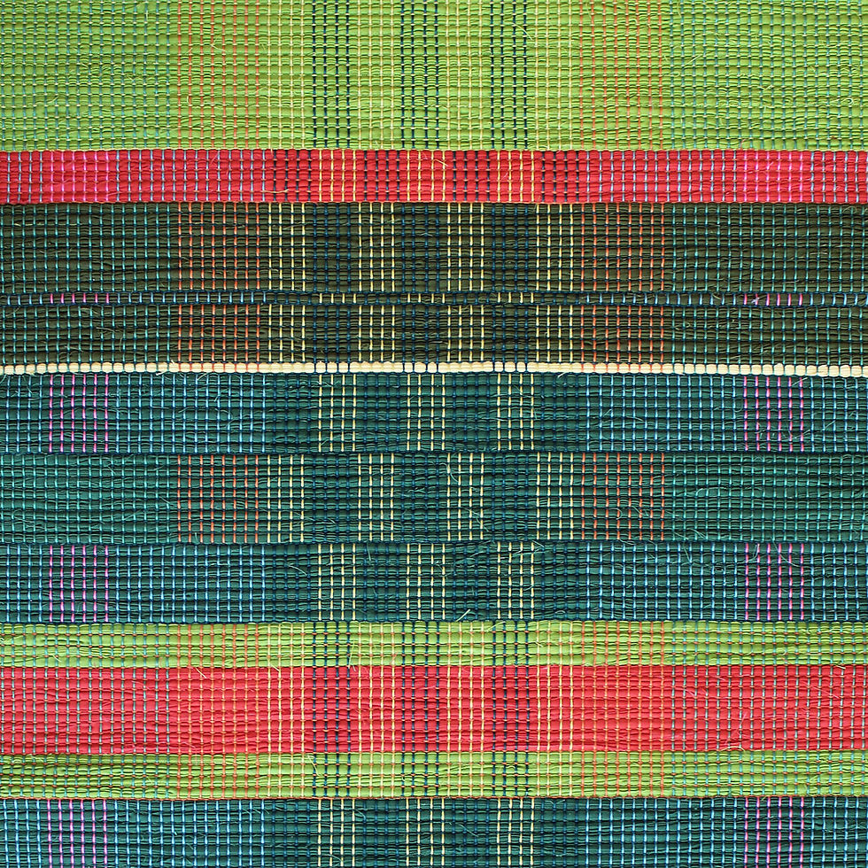 Most rugs are made with 100% cotton yarn and fabric strips with a few rugs woven in cotton yarn and leather strips. The rugs works well at the kitchen sink or back door, along side your bed and in your entryway; just about anywhere in your home where you want a functional shot of color. We recommend adding a nonskid pad to your order for no extra charge. This helps to keep the rugs in place to avoid slippage. Cotton rugs are completely machine washable; leather rugs are not machine washable but can be wiped down with a damp cloth. For more rug care information please go to the FAQ page.